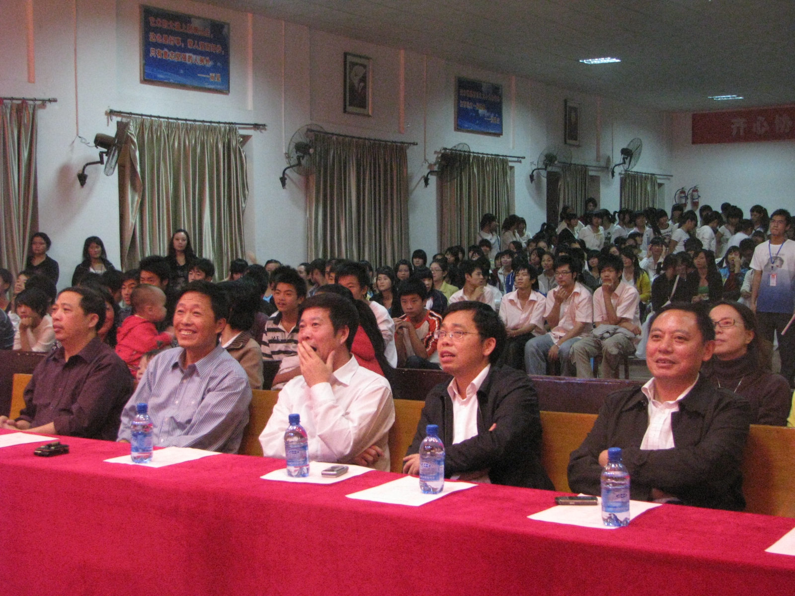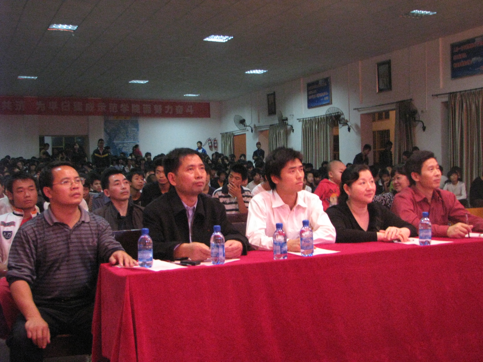 院领导陈立楚、刘自斌、袁其谦、邹松建、继续教育部主任朱存斋及各部门负责人和部分老师出席并观看了比赛.本次比赛共有十二支队伍参加,继续教育部主任朱存斋为比赛致辞。党委书记陈立楚发表了热情洋溢的讲话,他对继续教育部09年取得的巨大成绩予以充分的肯定,指出大家要通过唱响爱国主义经典歌曲,振奋精神,激发士气,为把学院建设得更加美好贡献智慧和力量,并预祝合唱比赛取得圆满成功。