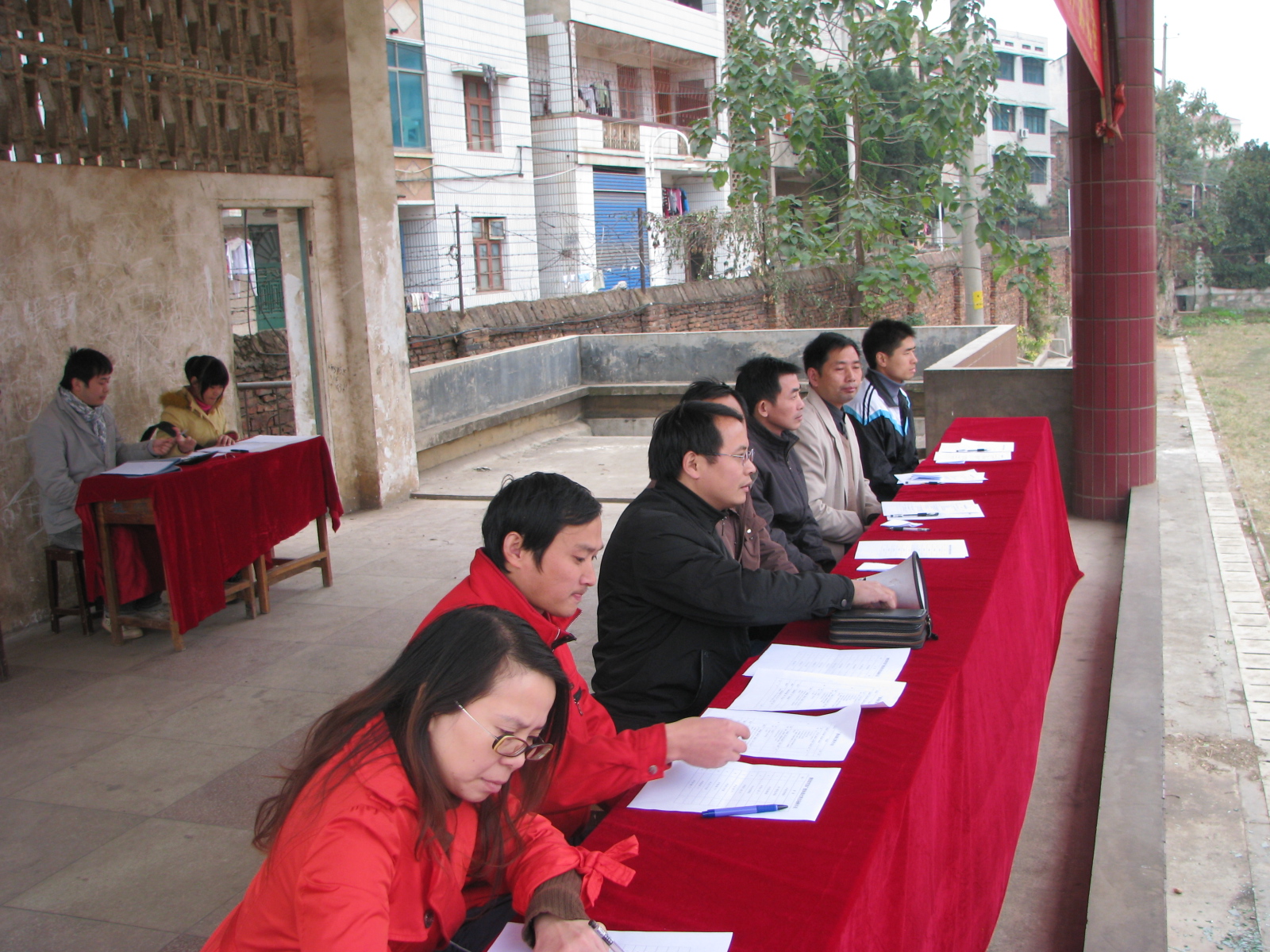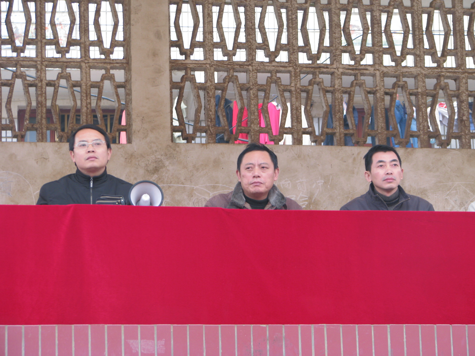 主席台上各位评委正在观看各班级的体操比赛