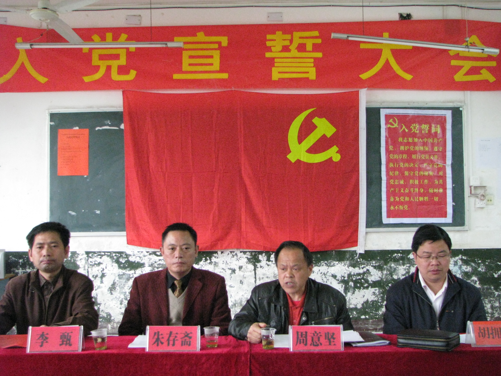 周意坚同志代表院党委对全体新党员同志表示衷心的祝贺,要求全体党员一定要端正自己的入党动机,时刻不忘入党的誓言,牢记全心全意为人民服务的宗旨,在工作学习中发挥党员的先锋模范作用。