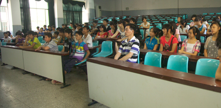 8月18日上午8:30,在第三教学楼206阶梯教室继续教部主任朱存斋副教授为今年到校的“雨露计划”新生主讲了“遵循院训,成就自我”的专题讲座,讲座由继续教育部教务科长邓喜培主持,学生科长刘连志、班主任和全体新生出席。