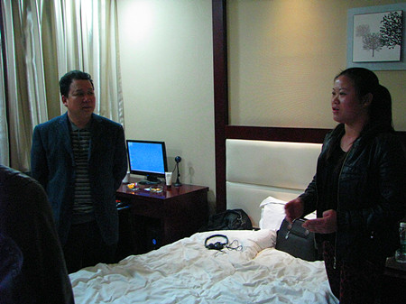 11月12日晚,市农业局科教科谢光伟科长在周意坚副院长、继续教育部主任刘罗仁和副主任邓喜培的陪同下来到华都宾馆和鑫昌宾馆慰问农民创业培训学员。