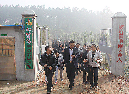 娄底市现代园林白鹭湾生态花卉基地地处娄底市经济技术开发区,占地约4万平方米,是一个融园林绿化设计施工、培育优良种苗和开发树桩、盆景资源及生态养殖、科研推广为一体的具有专业资质的企业。目前该公司开垦了总面积达800余亩的生产基地,其中沉水樟、香花槐、拟单性木兰、火棘、红花木莲等品种已成为市场畅销产品,并珍存有紫薇、红稠、赤楠、榆树、枸骨等古桩300余株。学员们参观了公司的苗木基地和白鹭湾养殖场。养殖基地投资3000万,现有1万只中药老山土鸡。老山土鸡每日放到树林觅食树叶、树籽、野草、昆虫,一日三餐主食是玉米、稻谷、小麦配以鱼粉、大蒜、松针等,产蛋期还以人参、当归、黄芪等二十多种中药补养。土鸡毛色光亮,身轻能飞,脂肪少,腿肌发达,能斗善跑;老山土鸡蛋微量元素、卵磷脂、氨基酸、维生素等含量明显高于普通土鸡蛋,胆固醇、脂肪含量明显低于普通土鸡蛋,现在老山土鸡蛋售价3.5元一只,市场销售情况良好。
