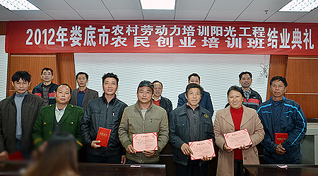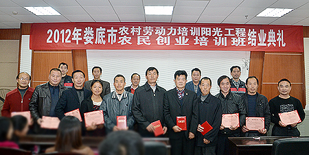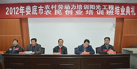 11月15日,2012年娄底市农村劳动力阳光工程农民创业培训班结业典礼在我院综合楼110教室举行。我院党委委员、副院长周意坚副教授、市农业局科教科科长谢光伟、我院继续教育部主任刘罗仁、副主任邓喜培、李甄出席仪式。110名学员圆满完成培训,取得结业证书。典礼中还表彰了吴见中、杨韶东、谭艳玲等优秀学员。典礼由刘罗仁主持。
