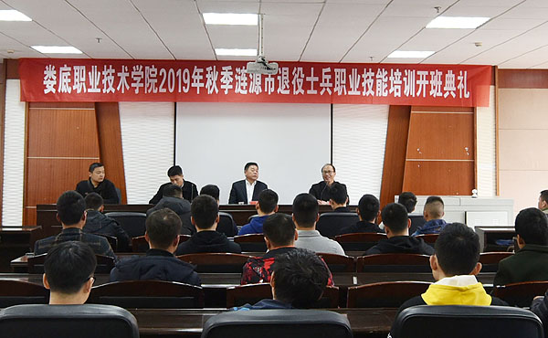 11月20日,涟源市2019年退役士兵职业技能培训班在我校综合楼101教室开班。我校党委委员、副校长金建雄,涟源市退役军人事务局就业创业股股长周杨舟,安置办副股长谭琪,我校继续教育学院院长王自然等出席。来自涟源市的40余名退伍士兵、我校继续教育学院相关工作人员参加了开班典礼。