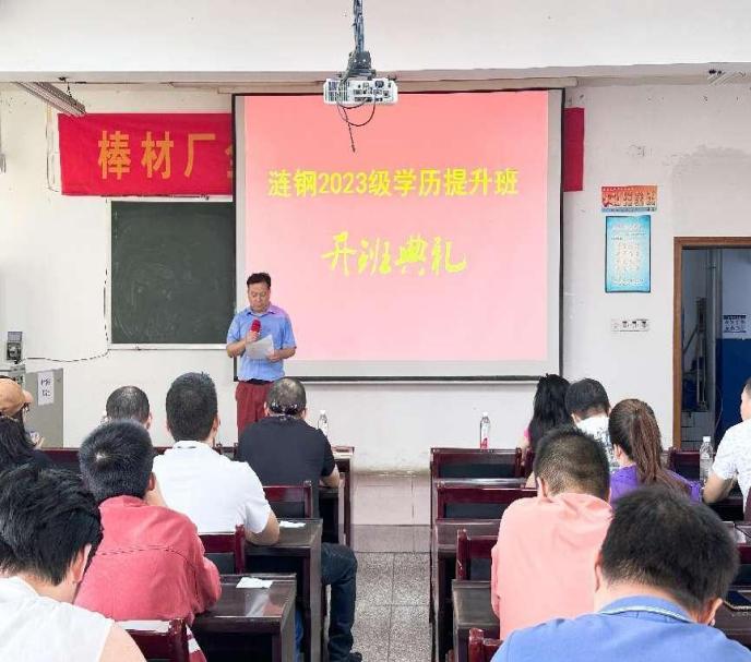 9月5日,涟钢2023级学历继续教育学历提升班线下教学正式开班上课,开班仪式在涟钢技工学校5号楼208室举行。涟钢集团公司人力资源部党委书记杨志刚、我校继续教育学院院长刘益洪出席并讲话,开班仪式由涟钢人力资源部教务科朱天武科长主持。