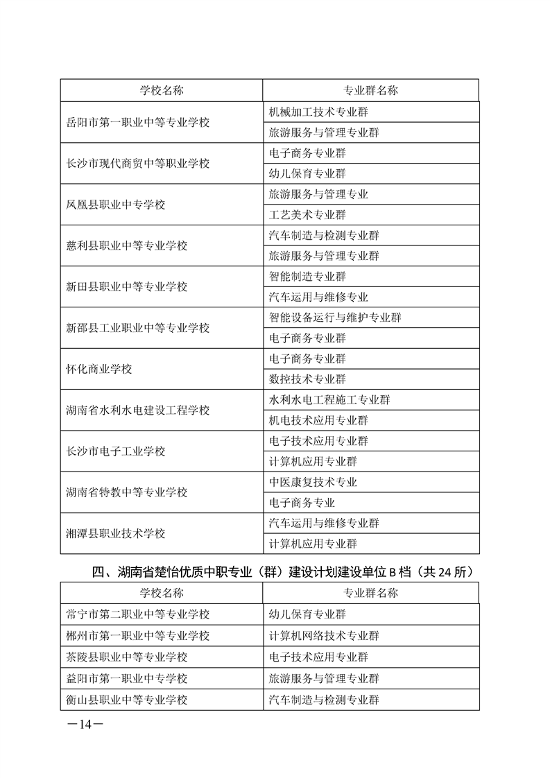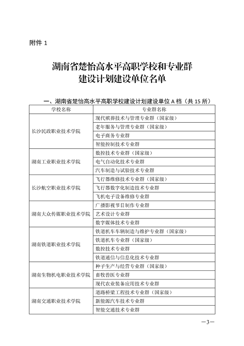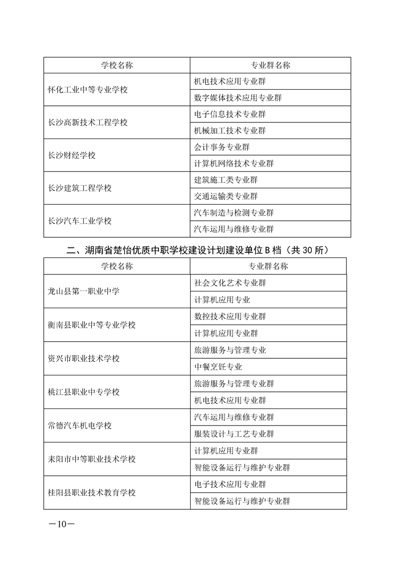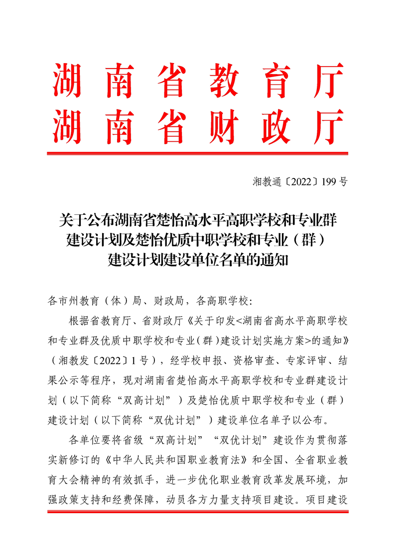 关于公布湖南省楚怡高水平高职学校和专业群建设计划及楚怡优质中职学校和专业(群)建设计划建设单位名单的通知