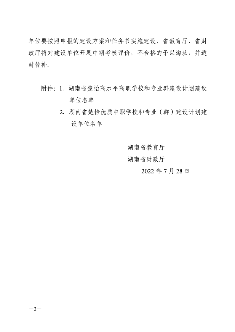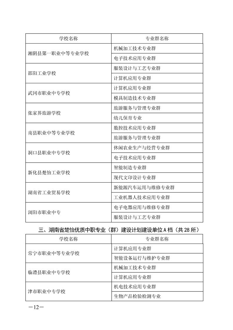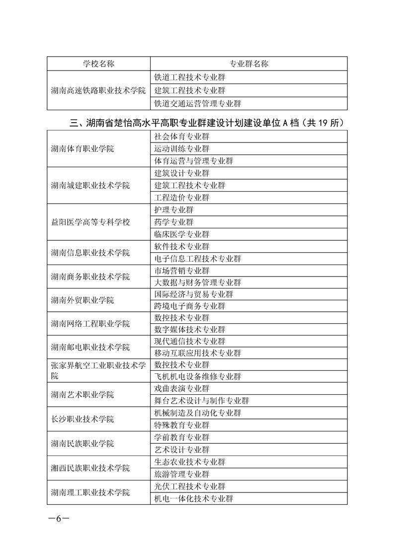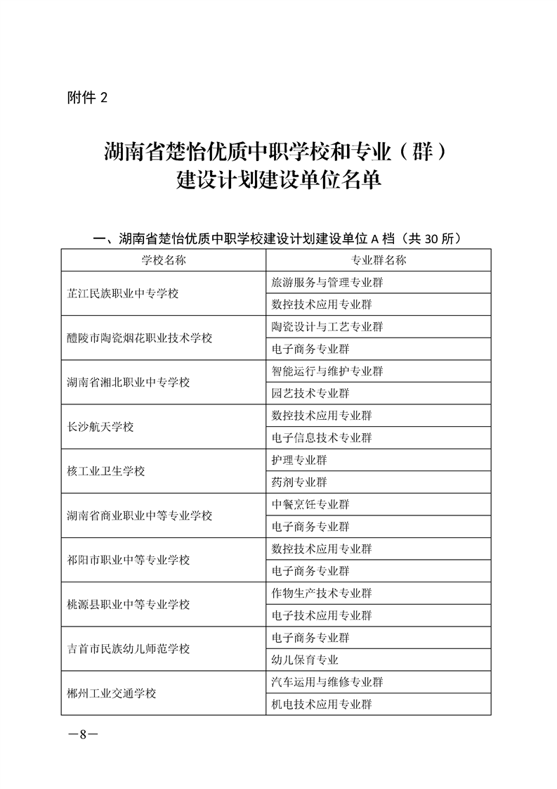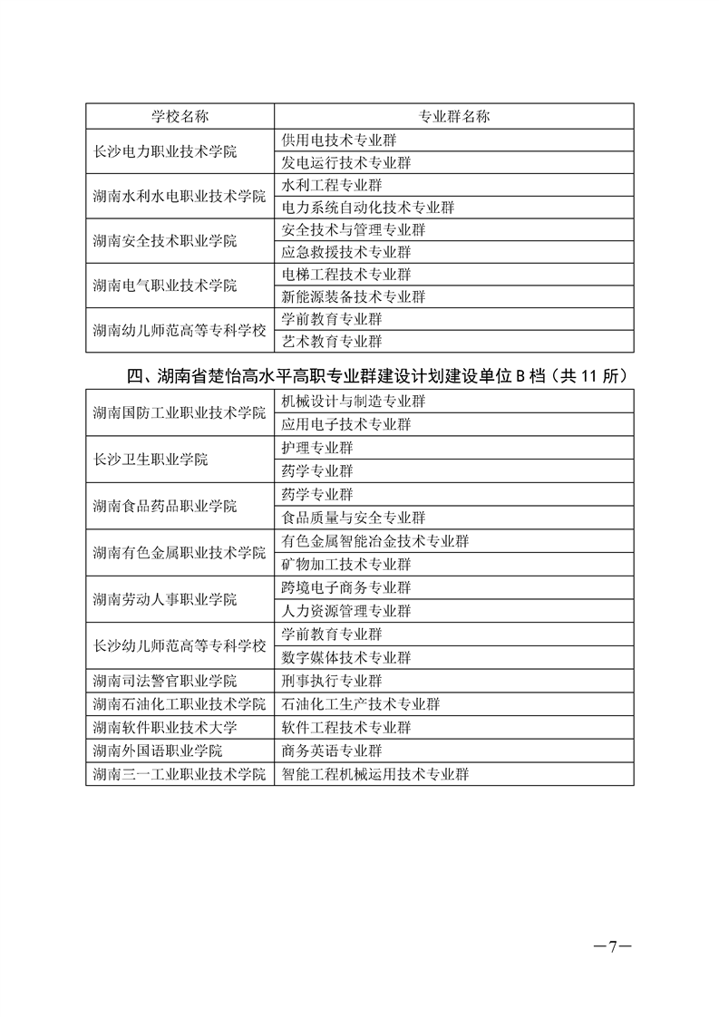 关于公布湖南省楚怡高水平高职学校和专业群建设计划及楚怡优质中职学校和专业(群)建设计划建设单位名单的通知