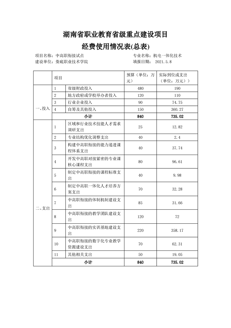 经费使用情况汇总表