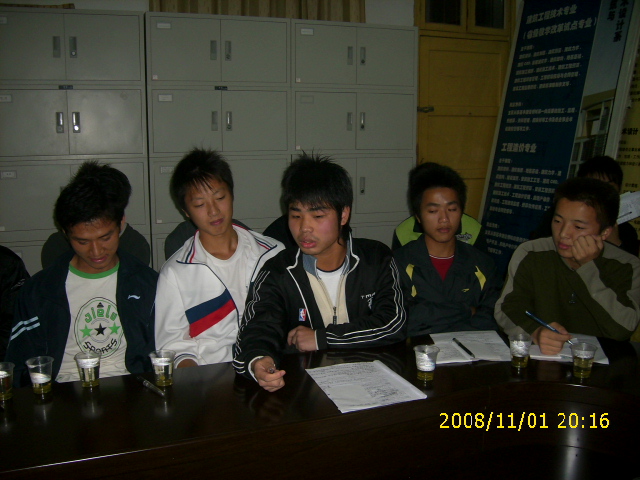 会议围绕如何建设“三风”展开热烈的探讨,各班纷纷亮出自己的方案,各抒己见。其中,07造大班的方案,颇具特色,就学风建设方面,他们将组建学习兴趣小组,以更好地促进优良学风的形成,形成良好的学习氛围。