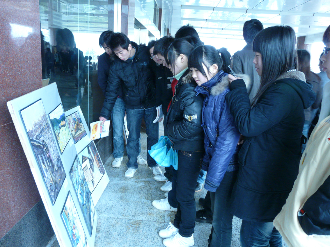 我系为了表达对电信系08网大1班唐浩同学的一份爱心。3月5-6号,特举行了爱心义卖活动。活动的地点先后在主教学楼门口、食堂橱窗栏处、北院第一栋女生宿舍橱窗栏处。义卖的形式是学生作品的义卖。在本次活动中,我系共拿出了大约二十多幅学生的优秀的美术作品来进行义卖,然后将义卖款捐给唐浩同学,希望他能早日摆脱病魔的困扰,重返校园!所谓一方有难,八方支援!而唐浩同学和我们又同时学习、生活在同一个娄职,我们就是一家人!因此,尽我们自己最大的努力去帮助他已经成为了我们每一个娄职人义不容辞的责任!让我们携起手来共同铸就爱的长城吧!