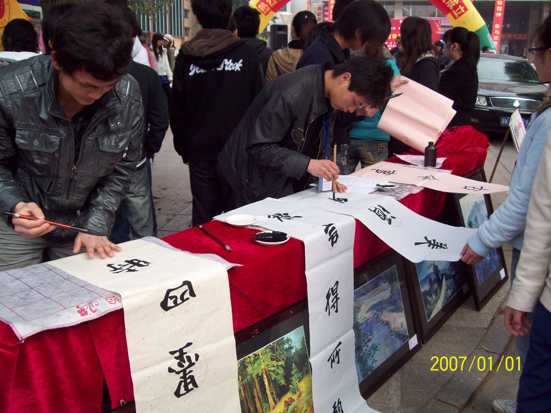 3月7号,我系在娄底市人民政府旁举行了大型的爱心义卖活动。本次义卖活动的形式多样,除了学生美术作品的义卖外,还包括学生现场书法作品的义卖。另外,我系还派出了07环大班作为代表参加了由院团委统一安排的义务演出。他们优美的舞姿、嘹亮的歌声,更是引来了在场观众的一阵阵掌声。
