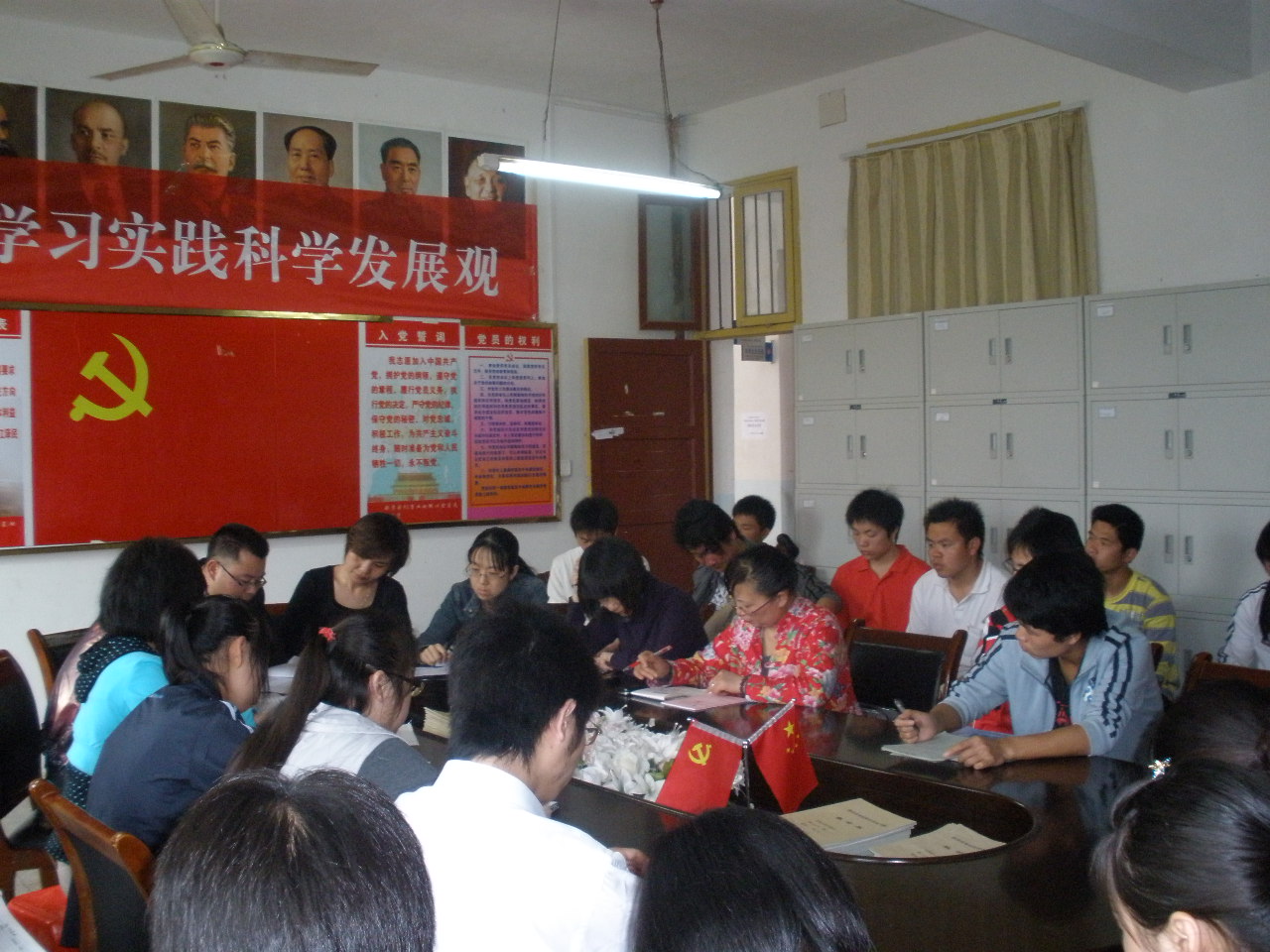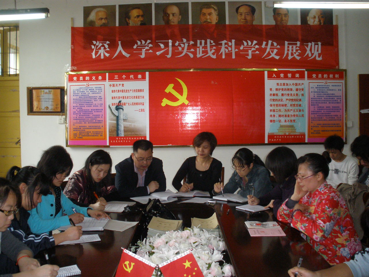 最后,曾主任在会上提到了关于党组织学习兴趣小组的活动开展以及党员挂牌形式的开展等问题并提出了一系列相关的要求。其中,她说到:自学教材不只是纯理论的学习,而应该把理论学习贯彻到实践中去,要做好工作笔记等等。