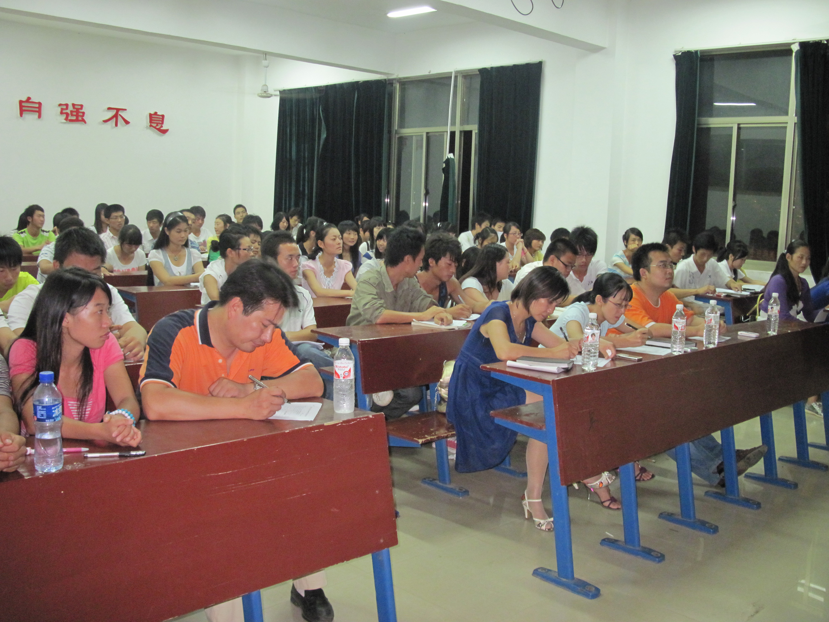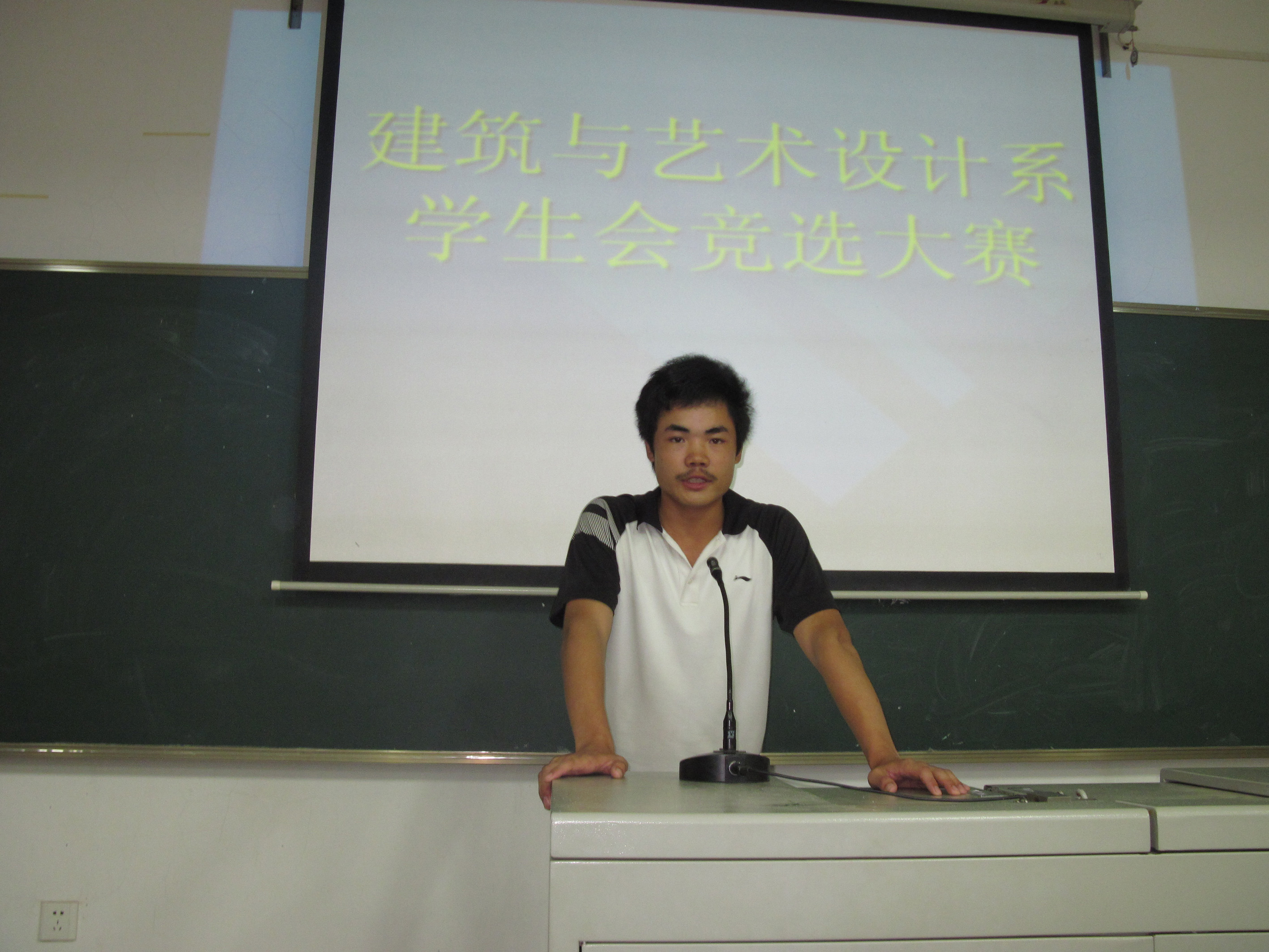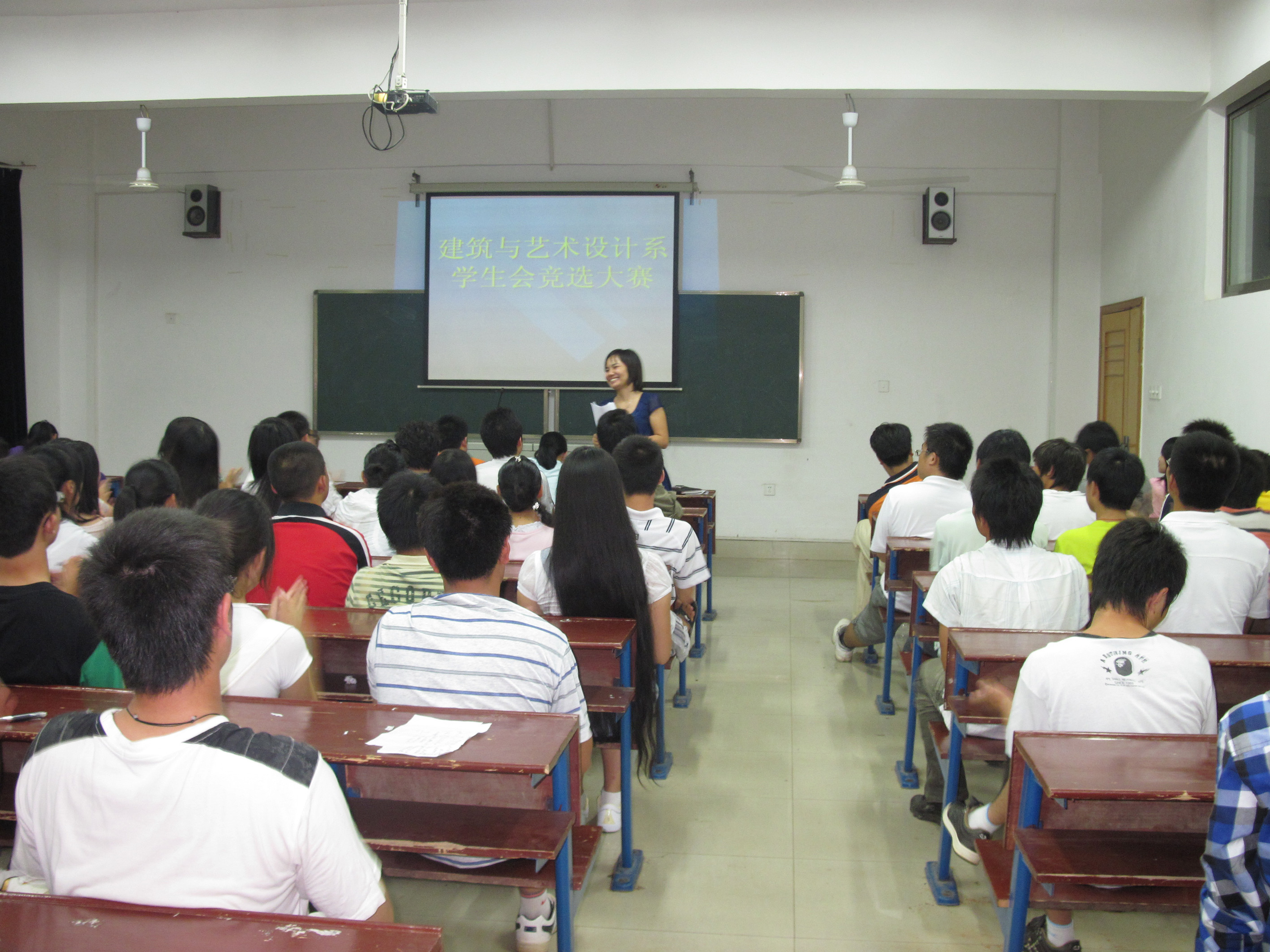 经过前面一次的笔试,在近二百名报名者中筛选出60多位佼佼者进行第二轮复赛。 2009年9月17日晚上6:30,建筑与艺术设计系在主教楼202举行了09级学生会干部第二轮竞选大赛。本次大赛由我系系主任夏高彦、系学工主任曾素纯、系学工干事系学生会指导老师伍琳以及09级各班辅导员老师担任评委。