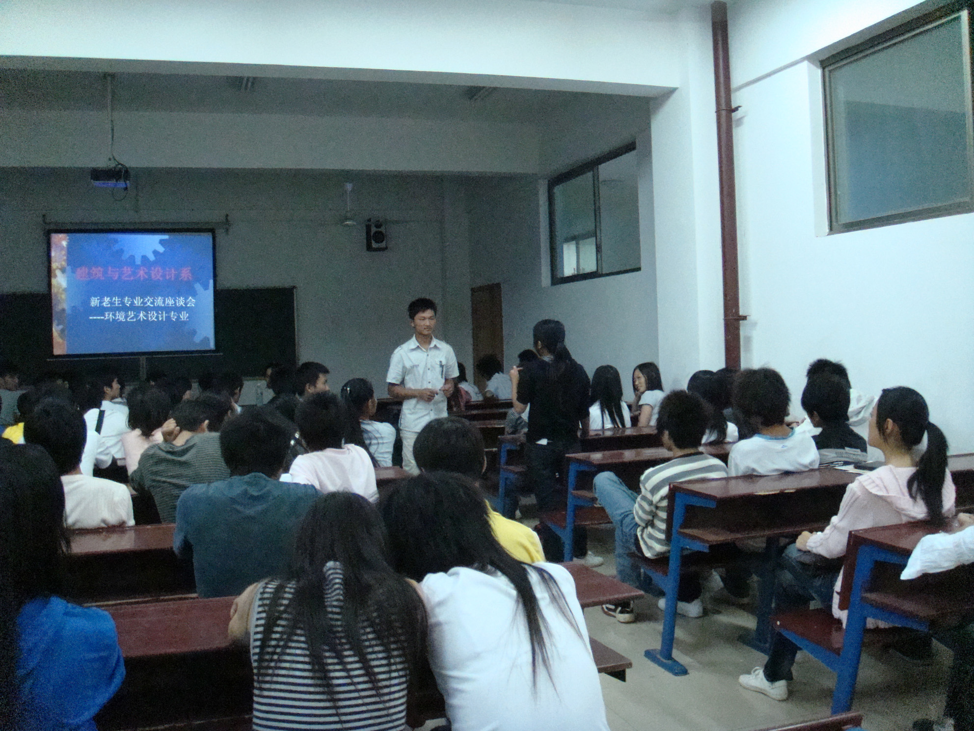 为帮助大一新生准确把握学习目标,使其更快适应和融入大学的学习生活,建筑与艺术设计系于9月28日、29日晚分别在主教楼302、303、310、410、510教室举行了新老生专业交流会。