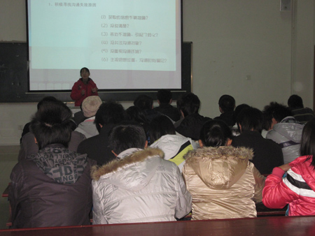开班仪式由学生会副主席冯济平主持,学生会主席李双全做中心发言,潘玉玺同学代表学员发言,表明了认真对待此次培训的态度与努力充实自己的决心。最后由学工主任曾素纯副教授宣布团学干部培训班正式开班。本次干部培训班分四堂课进行,第一堂课邀请了我系学工主任曾素纯主任主讲,曾主任就干部的定位与原则,干部的人际交往方面做了深入浅出的讲授。第二堂课《校园文化活动的策划与开展》由我系辅导员蔡丁老师主讲,蔡老师为同学们讲解了校园活动的开展与策划,强调活动的质量与实效,活动流程的注意事项等。第三堂课《沟通》由我系系主任夏高彦主任授课,讲述了沟通在我们生活上、工作上的重要性,告诉我们怎样提高沟通能力,介绍了一些训练方法。第四堂课《不做沉默智者》由科研学报部的王李平副教授主讲,王教授以轻松的氛围、幽默的话语教我们如何说,生动的故事及寓意,博得满场喝彩。