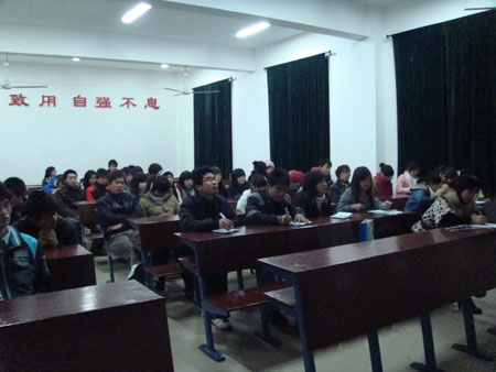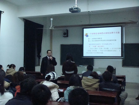 12月16日晚7点,我系在主教楼506举行了“创业论谈”知识讲座。本次讲座邀请的嘉宾有教务处副处长肖宏华教授,我系学工主任曾素纯副教授。参加了本次讲座的还有07级环大、艺大班的全体学生以及我系07级工民建专业各班班长、团支书。本次讲座由肖宏华教授主讲。