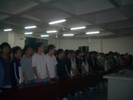 大会首先进行的是新党员的入党宣誓仪式,在庄严肃穆的氛围中,由曾素纯书记领誓,42名预备党员面对鲜红的党旗,郑重地举起右手向党宣誓。短短一百多字的誓词是他们入党后对党的第一个承诺。宣誓后,08工大3班伏婷代表新党员讲话,她表示一定牢记党的章程,坚持以党员的标准严格要求自己,做一个合格的党员。09造大1班田源代表入党积极分子表决心,他表示会一直按照’三个代表‘的要求努力学习,严格要求自己,争取早日成为一名光荣的共产党员。最后,最后,李清奇书记对活动进行了高度赞扬并对新发展的党员提出了几点希望:第一,时刻牢记自己是一名共产党员;第二,自觉接受党组织的教育、管理和监督;第三,不断加强党性修养,自觉改造世界观;第四,要起模范带头作用。