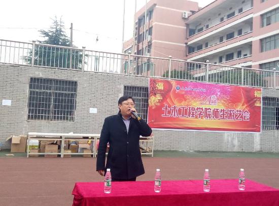 为营造土木学院文化气氛,给各位同学提供更多的展示平台,向同学们展现丰富多彩的大学生活。12月23日早上九点整,我院在田径场举办了游园会活动。本次活动,到场的领导有我校党委委员副校长颜彩飞、我院院长李清奇、我院学工副院长石湘伟、教学副院长严朝成、学工干事邵耀彩以及各班辅导员、所有学生共同参与。