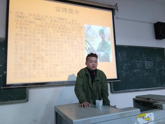 为了积极响应“学习雷锋好榜样,优良传统永相随”为主题的团活动,3月11日晚上七点半,土木工程学院在主教楼三楼分班开展了学习雷锋的主题班会。由各班辅导员组织,团支书主讲,16、17级全体同学共同参与。