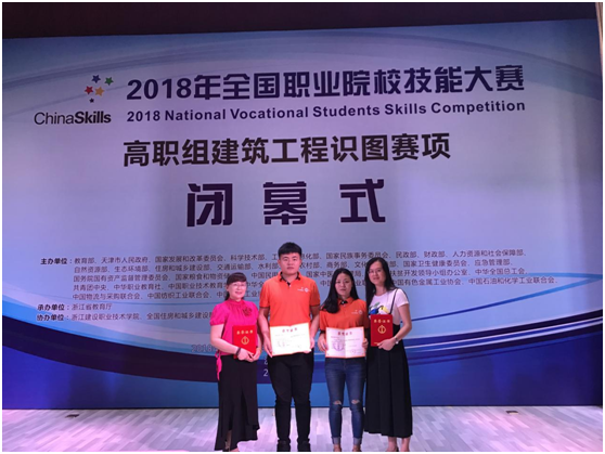 5月26日,2018年全国职业院校技能大赛高职组建筑工程识图赛项在浙江建设职业技术学院拉开帷幕。此次大赛有来自全国的104所职业院校参加比赛。由我校陈翔、汤敏捷两位老师指导的学生黄金、李宁团队,凭着扎实的专业功底、良好的竞技水平,获得了三等奖的好成绩。