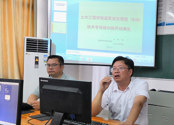 随着建筑业向工业化和信息化不断发展,建筑信息模型(BIM)技术将会应用于建设项目规划、设计、施工、运营管理全过程;同时,建筑信息模型(BIM)也成为教育部“1+X”证书六个试点技能等级证书之一。为适应建筑业发展需求,在现代建造技术专业群各专业人才培养方案中开设了《建筑信息模型(BIM)技术》课程,同时,在相关专业课程中融入了建筑信息模型(BIM)技术应用的内容。为满足教学需要,学院聘请了湖南红瓦科技有限公司BIM培训讲师杨四保和谢峰对全院建筑类专业教师进行专项培训。