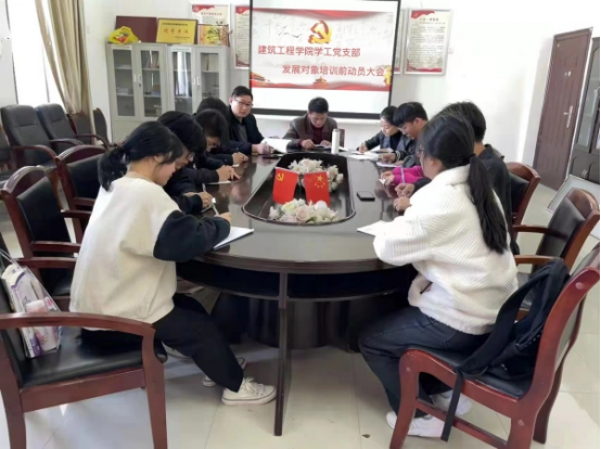 为进一步提高发展对象的政治思想素质,增强对党的知识的了解,保证新发展对象的质量,11月26日下午,建筑工程学院学工党支部于党员会议室召开发展对象培训前动员大会。参加此次动员大会的有:党总支书记李志强、学工副院长张晶、学工干事邵耀彩以及8名发展对象。会议由邵耀彩主持。