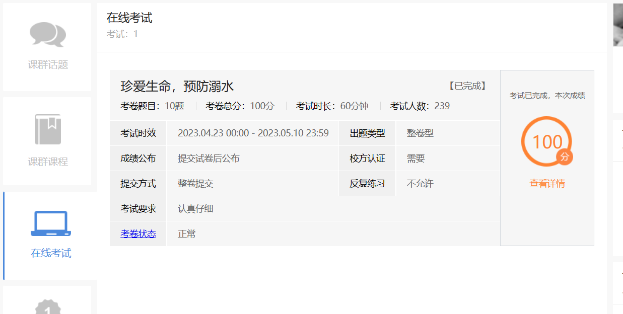 夏天即将到来,天气炎热,有许多同学为了舒适凉快选择了游泳。近年来,接连发生大学生游泳溺水死亡事故。为进⼀步加强校园安全教育,预防和减少溺⽔事故发⽣,提⾼⾃救互救能⼒,切实保障学⽣⽣命安全我院展开了大学生防溺水安全教育易班优课活动。