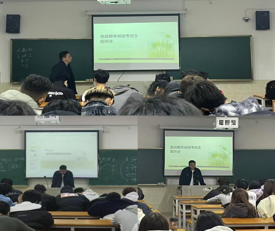 为加强学风建设,严肃考风考纪,营造诚实守信的考试氛围,12月1日晚上,各班级在主教楼开展以诚信期末考试为主题的班会。