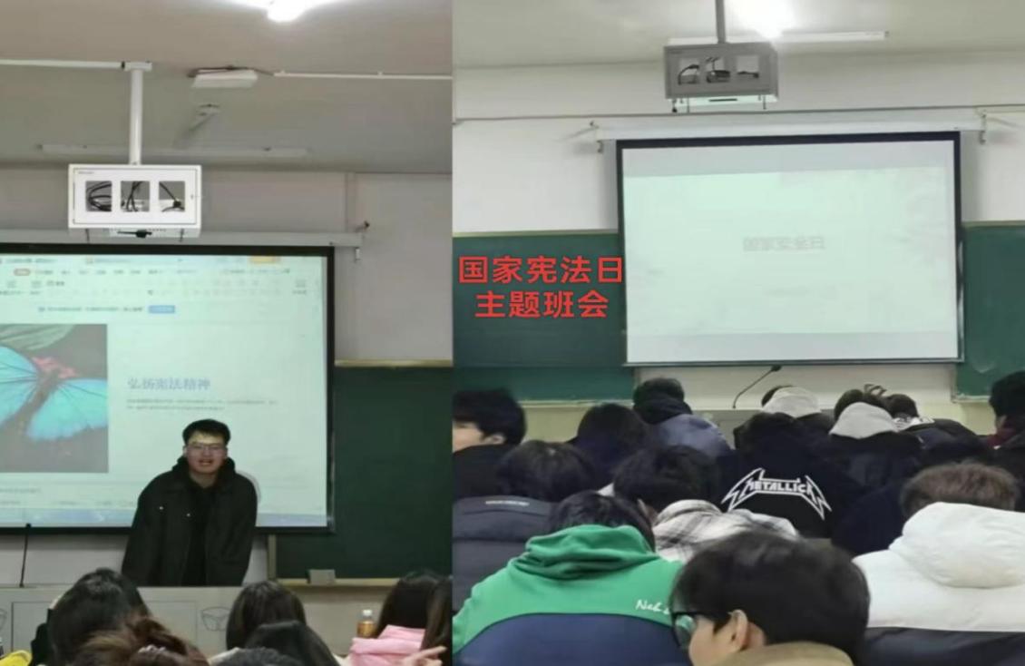 为增强学生法治观念,提升宪法意识,12月8日晚上,各班级在主教楼开展以弘扬宪法精神为主题的班会。