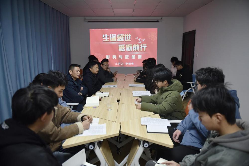 为深入学习贯彻党的二十大精神和习近平新时代中国特色社会主义思想,进一步增强学生的政治认同和爱国情怀,12月27日上午,学校党委委员、副院长申晓伟进学生社区为建筑工程学院预备党员们上了一场别开生面的形势与政策课。学生工作处处长李规,建筑工程学院党总支书记李志强、学工副院长张晶参加此次学习活动。