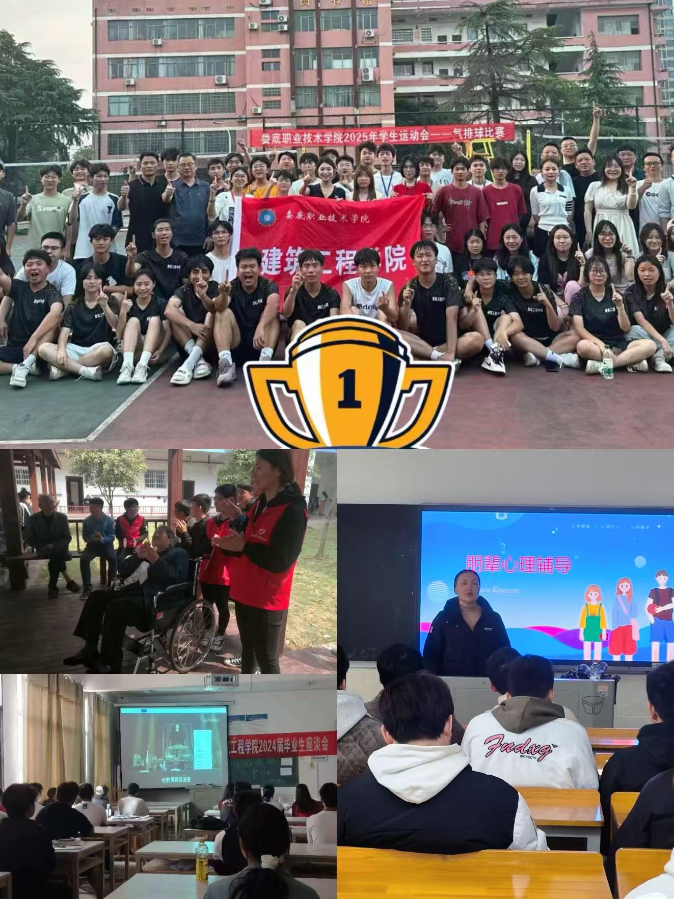 党建上构建四级工作架构,11名学生党员下沉社区服务超300小时,红色研学、结对帮扶筑牢信仰根基;文体活动紧扣专业,建筑模型赛、BIM挑战赛锤炼本领,篮球赛等吸引超600人参与,尽显学子风貌;征兵工作精准推进,成功输送16名学子入伍。