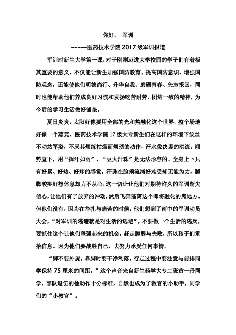 医药技术学院2017级军训报道
