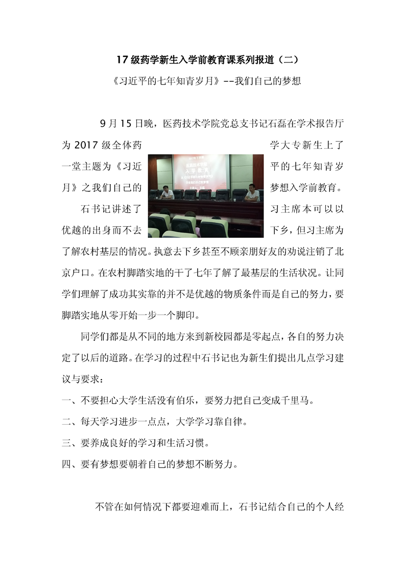 17级药学新生入学前教育课系列报道(二)
