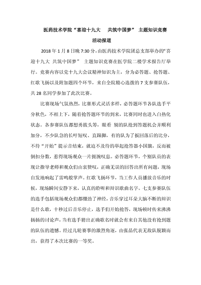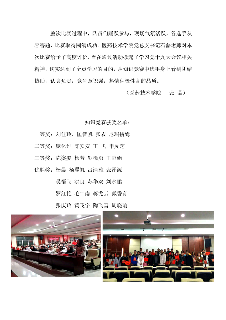 医药技术学院“喜迎十九大 共筑中国梦” 主题知识竞赛 活动报道