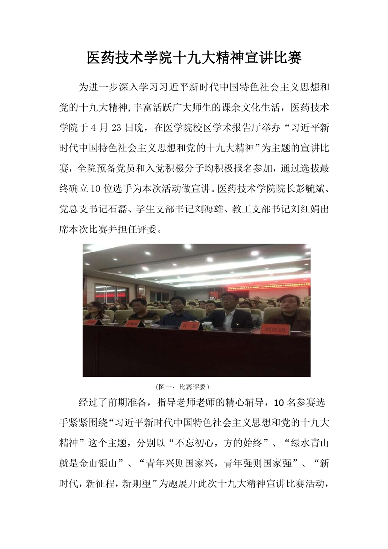 医药技术学院十九大精神宣讲比赛