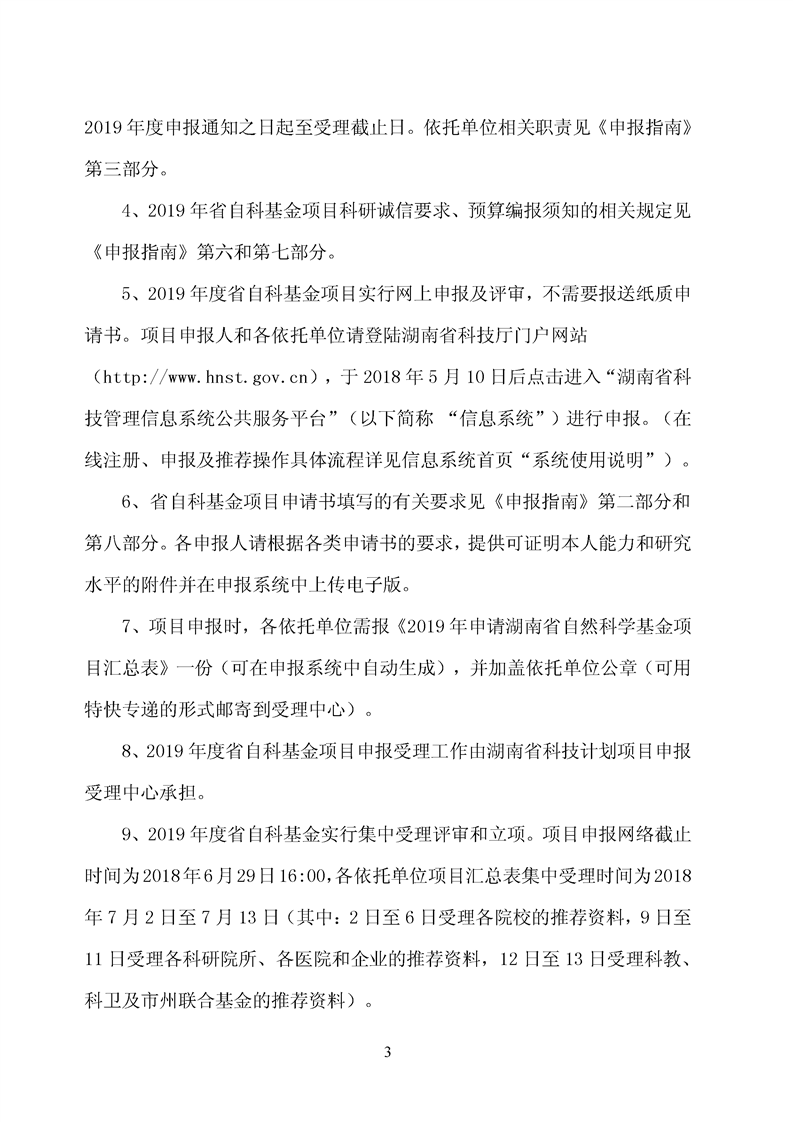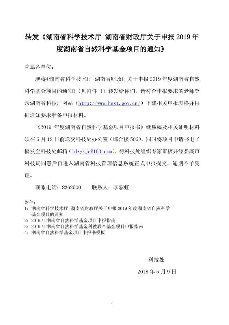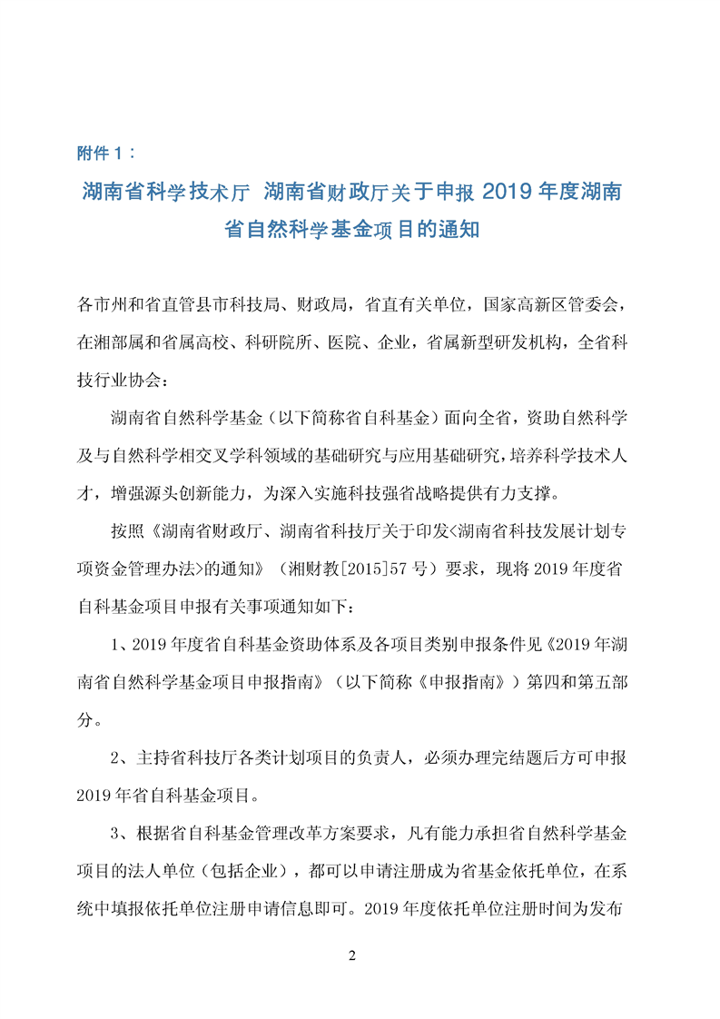 转发湖南省科学技术厅 湖南省财政厅关于申报2019年度湖南省自然科学基金项目的通知
