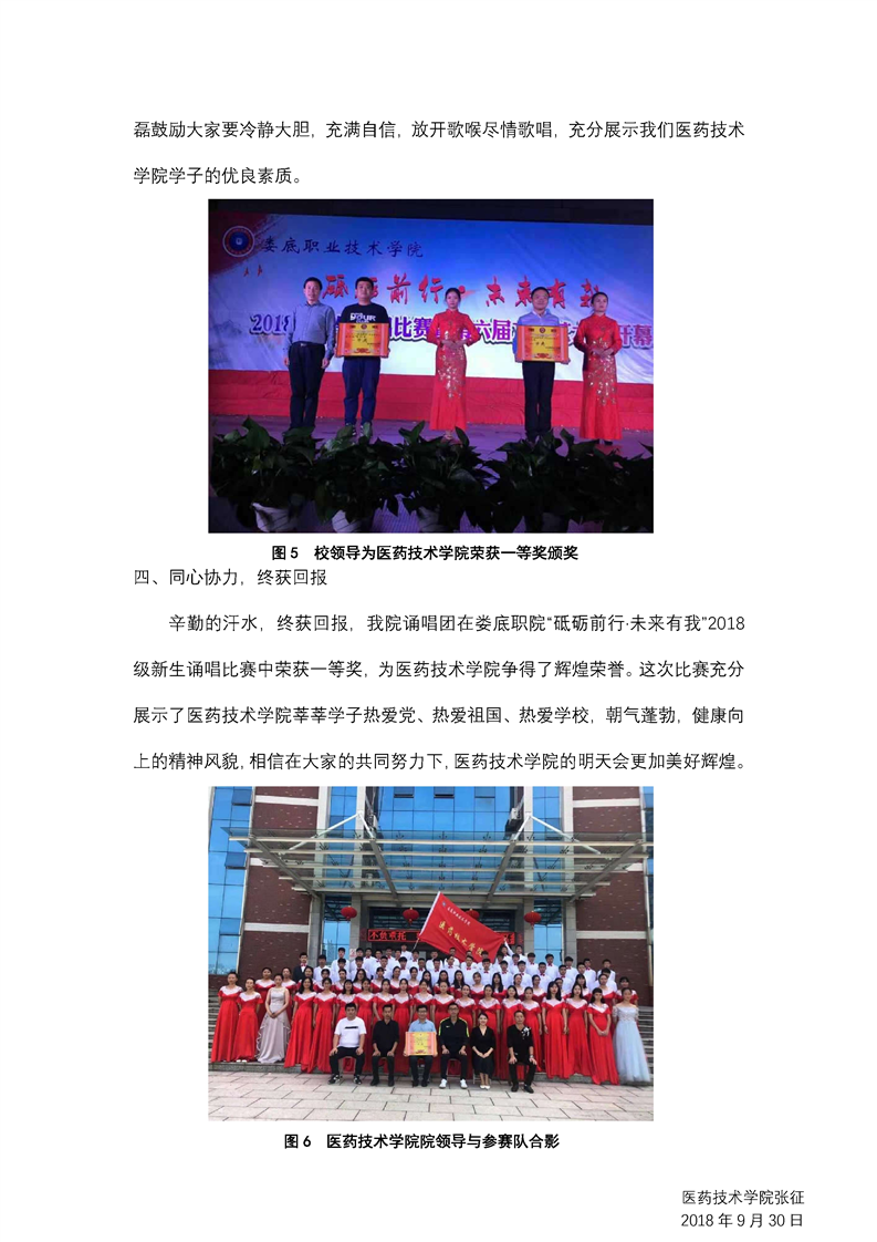 娄底职院“砥砺前行•未来有我”2018级新生诵唱比赛 医药技术学院喜获一等奖