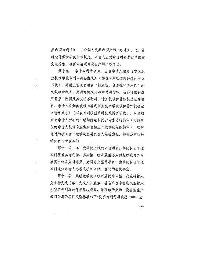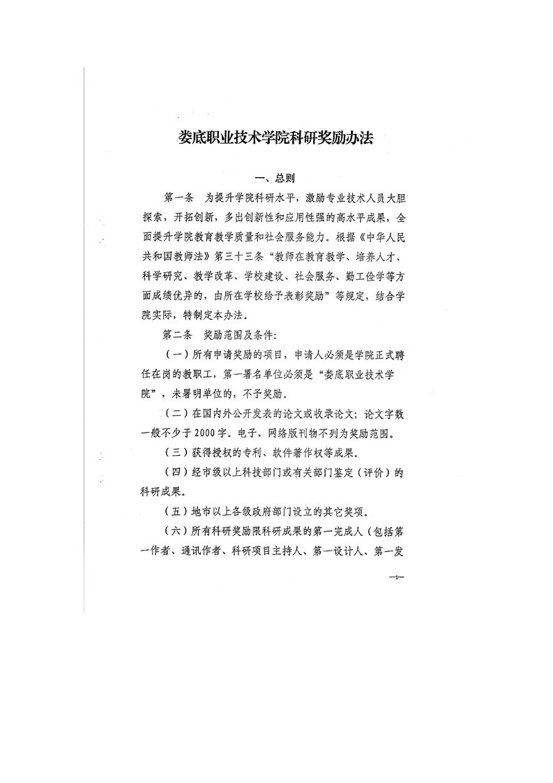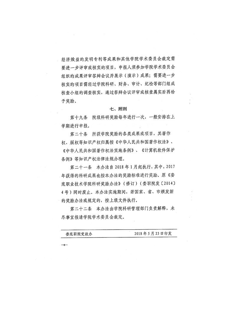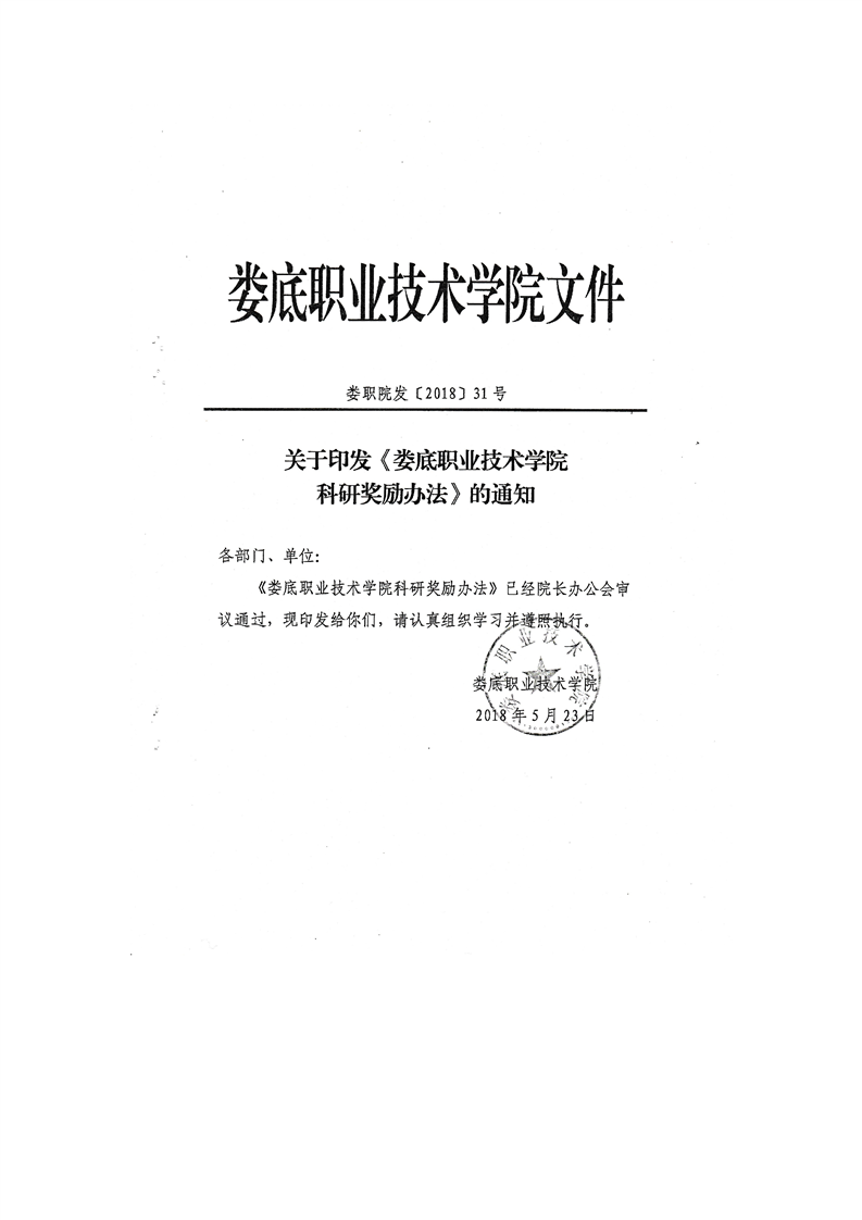 关于印发《娄底职业技术学院科研奖励办法》的通知