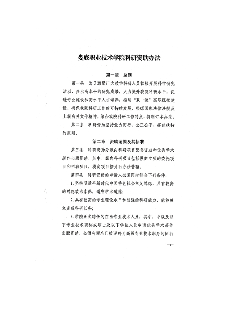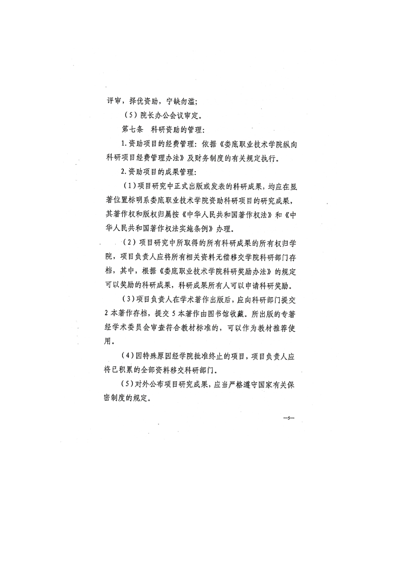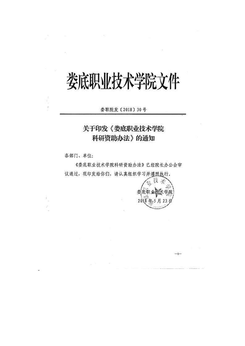 关于印发《娄底职业技术学院科研资助办法的》通知