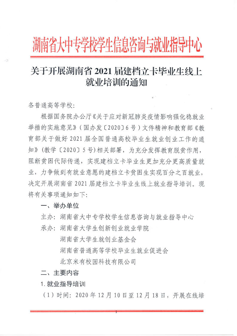 关于开展湖南省2021届建档立卡毕业生线上就业培训的通知