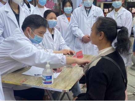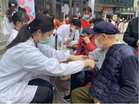 我院师生志愿者在医学部学生会和社区工作人员的精心组织下,有条不紊的为社区居民提供了量血压、心肺听诊、内科咨询、中医咨询、康复咨询、营养咨询、眼视光咨询、心肺复苏、海姆立克急救术现场教学等医疗服务。
