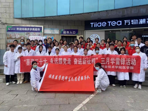 3月12日,阳光普照,春风袭人,临床医学院组织师生志愿者,配合医学部学生会和蜜蜂社区居委会,参加了在步步高广场的学雷锋义诊活动。
