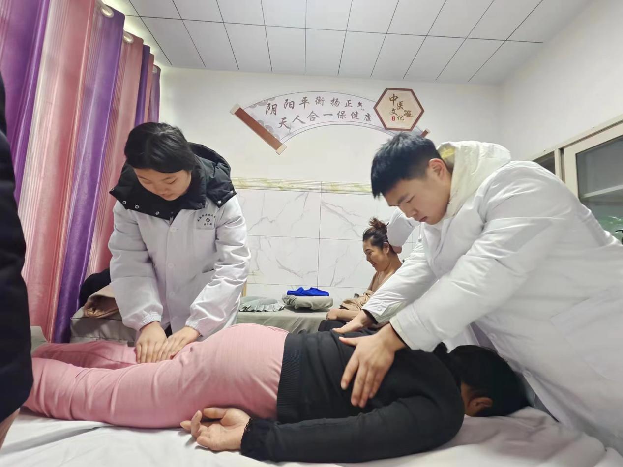 揭牌仪式结束后,学校医疗服务小分队在专业老师的带领下为村民开展了义诊,提供了艾灸、推拿、理疗等中医特色的医疗服务,并对当地村医进行了专项技术指导。村民纷纷夸奖师生们医术精湛、手法娴熟、服务优质,疗效显著,希望能长期定期开展类似活动。