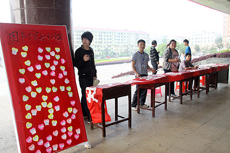4月18日上午,由我院图书馆、宣传统战部、团委主办,读者协会承办的“世界读书日”系列活动之“读者签名”和“知识有奖竞答”在主教学楼举行。