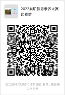 参赛选手通过扫描以下二维码进入微信群“2022娄职信息素养大赛比赛群”,加群时请备注“班级和姓名”。入群后按要求完成群内在线报名信息的填写,比赛进展情况将第一时间在群里公布。