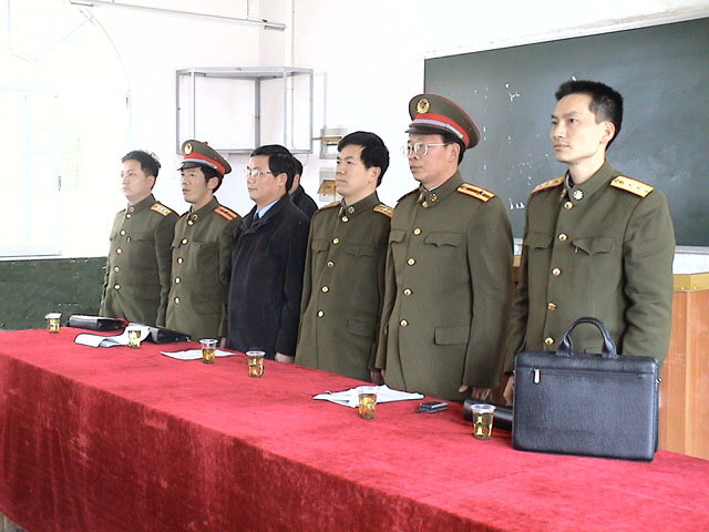 3月24日,我院举行基干民兵整组点验仪式。娄星区武装部政委李光中、我院副书记、副院长李铁林、党委副书记彭建胜、保卫处副处长龙玉林及学院基干民兵排全体民兵出席点验仪式。仪式由彭建胜主持。