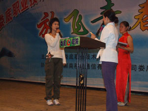 | 为了营造积极向上、格调高雅、文明健康的校园文化氛围,为大学生搭建一个提高素质,展现自我,飞扬青春和激情的舞台,充分挖掘大学生各项潜能,我院“动感地带”杯首届青年学习节隆重开幕。 10月26日晚,首届青年学习节开幕式及“闪亮脱口秀”主持人大赛决赛在院礼堂举行,党委副书记彭建胜、副院长龙伟和师生代表、校外嘉宾1000余人欢聚一堂,共度欢乐时光。开幕式由彭建胜主持,龙伟、肖志江向大会致贺词,财经贸易系学生李小曦代表学生发言。“闪亮脱口秀”主持人大赛实行无门槛报名,学院所有的学生均可报名参赛,经过层层选拔,进入决赛的16名选手已经是身手不凡,决赛气氛相当热烈,现场学生踊跃参与,还邀请到了娄星频道节目主持人苏莹担任特邀评委。通过模拟主持、知识问答、才艺展示三个环节,选手们充分展示了自己的聪明才智。张敏、周爽、周寒冰等十名同学获得了十佳主持人称号。比赛中还穿插了观众互动环节,10名幸运观众获得了由中国移动娄底分公司提供的奖品。 | |