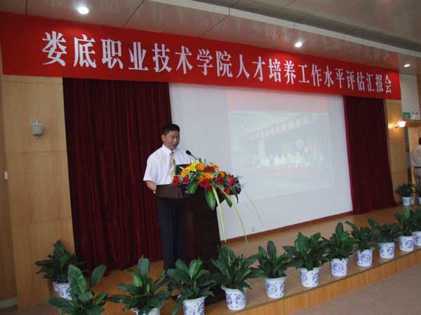 开评仪式由省教育厅贺安溪处长主持。 王键副厅长代表湖南省教育厅发表讲话,他在讲话中指出:大力发展职业教育是落实科教兴国战略和人才强国战略的重大举措;是贯彻党的教育方针,遵循教育规律,实现教育事业全面协调可持续发展的必然要求,是振兴教育计划中的一项重要工作。近几年来,湖南涌现出了一批发展较快的高职学院。他们按照“以评促建,以评促改,以评促管,评建结合,重在建设”的方针,既注重规模的扩张,又注重内涵的提升,努力提高教育教学水平和办学质量,为地方经济建设和社会发展做出了贡献。娄底职业技术学院在娄底市委、市政府的高度重视和大力支持下,班子团结,师生员工和衷共济,在较短的时间内取得了较快的发展。评估专家对学院进行人才培养工作水平评估是学院发展中的一件大事,是对学院的一次全面会诊,学院一定要珍惜这次千载难逢的好机会,积极配合评估专家组进行人才培养工作水平评估,虚心听取专家们的意见,进一步总结经验,查找差距,并认真进行整改,使评估成为推动学院各项工作全面协调持续发展的良好契机。
