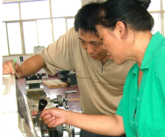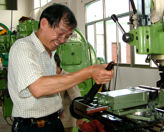 正式开赛的前一天,来自娄底职业技术学院的参赛选手、该院实习指导老师曾建设,在赛台前忙得满头大汗。他告诉记者,他是从华达机械厂招聘来娄底学院的,曾与铣车打了二三十年交道。他说,他虽是高级技工,但还是生怕比赛太落后,所以先来练练手。记者发现他右手的食指裂了个口,正渗着殷红的血,便提醒他。他嘴里说着“没事”,脸上绽开了灿烂的笑容。