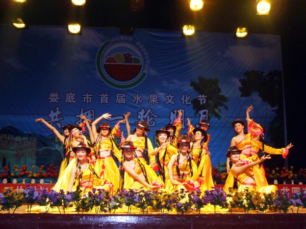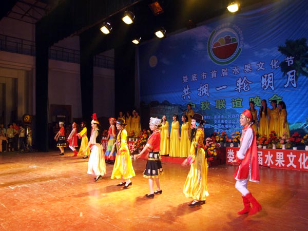 9月 29日晚,我院学生艺术团参加了娄底市首届水果文化节“共拥一轮明月”中秋联谊晚会,为参加盛会的娄底市民及台湾友人献上了精彩的文艺节目,获得了在场观众的热烈欢迎。(刘艳)